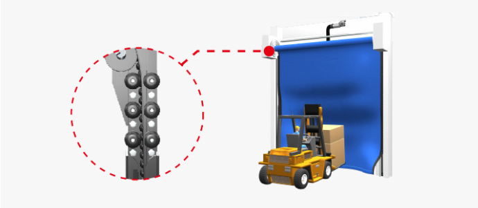 近兩年來,冷庫快速門是冷鏈物流中的一個新人。為了滿足冷庫物流通道對貨物頻繁進出冷庫的要求,傳統的平移門已經不能滿足大型冷庫的要求。由于電動平移門運行速度慢,不方便叉車順利通過,還會造成冷氣泄漏,冷庫運營成本過高。為解決這一問題,冷庫快速門誕生了。